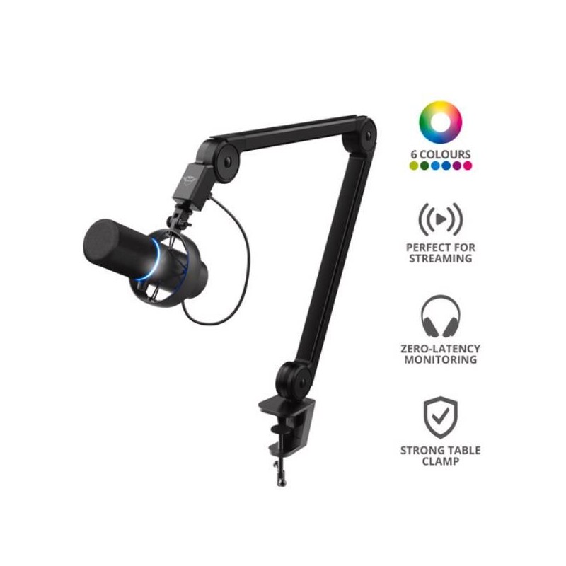 Trasforma la tua scrivania in uno studio di registrazione. Con il pattern di registrazione a cardioide, il monitoraggio a latenza zero e l'asta flessibile in alluminio forniti in dotazione, il microfono professionale Trust Onyx offre tutto il necessario per registrazioni audio di qualità professionale. Inoltre, l'anello di luci LED regolabili a sei colori permette di realizzare registrazioni di alta qualità.