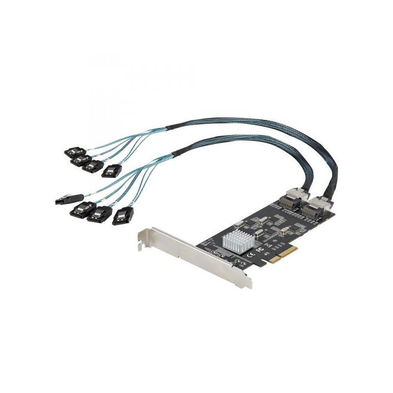 Scheda SATA 3 PCI express x4 GEN 2 x8 porte per SSD/HDD SATAQuesto controller SATA III (6 Gbps) a 8 porte consente di aggiungere otto dischi rigidi (HDD) SATA o unità a stato solido (SSD) a 6 Gbps a un computer o a un server tramite uno slot per schede PCIe x4. La scheda supporta le specifiche SATA III e PCI Express Gen 2 e quattro controller SATA per una soluzione di archiviazione dei dati ad alte prestazioni.Quattro controller per prestazioni SATA a 6 Gbps a 8 porteDotata di quattro controller SATA a 6 Gbps a 2 porte e di MUX PCIe-x4, questa scheda SATA consente il collegamento di otto unità SATA a 6 Gbps ad alte prestazioni con una velocità totale combinata fino a 16 Gbps. Le unità SATA vengono collegate tramite due porte Mini-SAS con due cavi adattatori Mini-SAS a 4 SATA. Per garantire un collegamento sicuro, ogni porta SATA sui cavi inclusi è dotata di un connettore di blocco che impedisce il distacco accidentale dell'unità all'interno del case del computer.Ampia