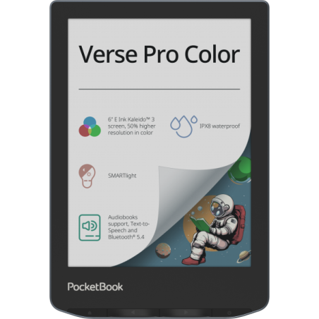 Il lato colorato della lettura elettronica - Nuovo schermo a colori 6" E Ink Kaleido™ 3: sicuro, no riflessi - Supporto audio e Bluetooth 5.4 per chi ama gli audiolibri - La funzione Text-to-Speech legge ad alta voce ogni file testuale - Impermeabilità IPX8 per leggere senza pensieri ovunque - SMARTlight per la regolazione del tono di colore dello schermo - Un e-reader super compatto, leggero e maneggevole - Supporto per 25 formati, inclusi fumetti e Adobe DRM - Wi-Fi e servizi cloud per acquistare e gestire libri comodamente