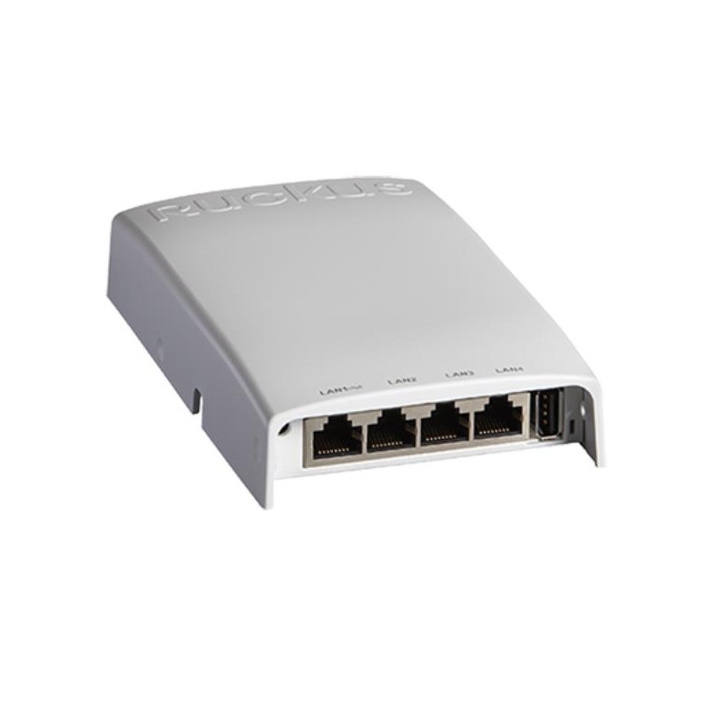 Ruckus 802.11ac dual-band concurrent 2.4 GHz & 5 GHz, Wired/Wireless Wall Switch, 1 10/100/1000 & 4 10/100 Ethernet Access Ports, POE in, PoE out (one port), USB port. Does not include DC power supply.