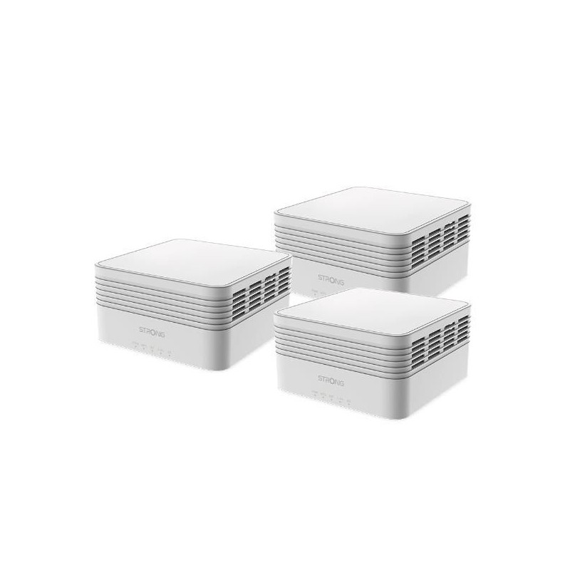 Utilizzando la soluzione Easy Mesh all’avanguardia, il Wi-Fi Mesh Home Trio Pack AX3000 di STRONG combina la tecnologia Mesh con il potente standard Wi-Fi 6 MU-MIMO per la massima velocità e copertura a casa. Questo pacchetto, contenente 3 ATRIA Mesh AX3000, sostituisce la vostra rete Wi-Fi attuale senza cambiare il vostro router o modem e porta una rete Wi-Fi super-veloce ed un roaming senza interruzioni con una velocità fino a 3000 Mbit/s con una copertura fino a 525 m². A seconda delle dimensioni della vostra casa, è possibile aggiungere fino a 3 ulteriori ATRIA Mesh AX3000 (6 ATRIA Mesh AX3000 coprono un’area fino a 1050m²). Gestisci la tua rete Wi-Fi Mesh semplicemente con un dito grazie alla App ATRIA Mesh disponibile per dispositivi Android e iOS.