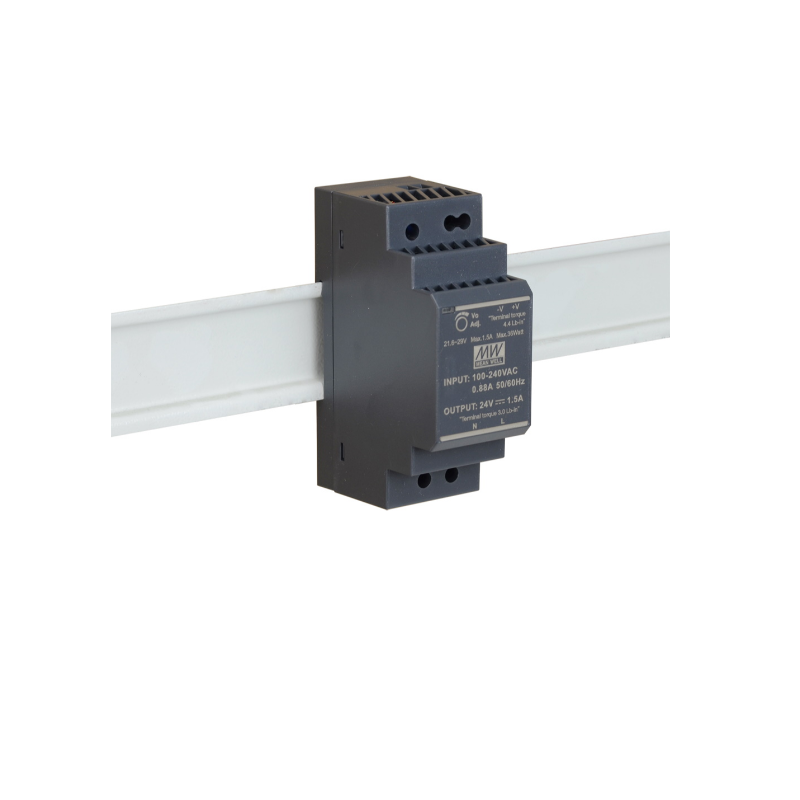 30W 24VDC Ultra Slim DIN Rail PSU Input: 85 ~ 264VACOutput: 21.6 ~ 29V DCDin rail TS-35/7.5 or 15 mountable-30~70°C operating temperatureCompatibile con DIS-100G, DIS-300G