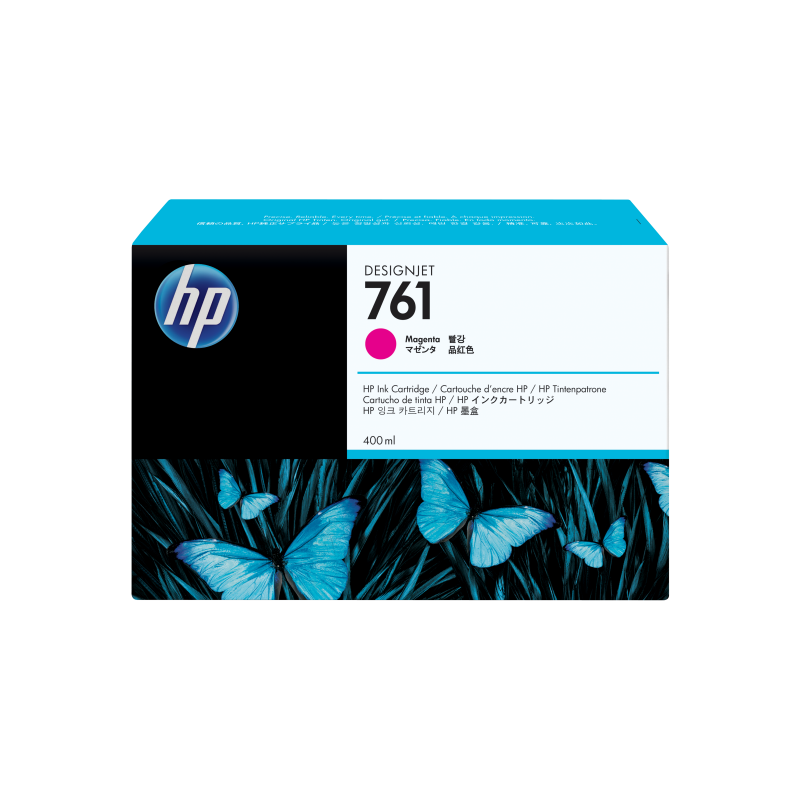 La cartuccia d'inchiostro Designjet HP 761 da 400 ml, magenta, soddisfa tutte le vostre esigenze di stampa - dai disegni nitidi e precisi a basso costo alle presentazioni a colori di alta qualità. Le cartucce originali HP offrono stampa ad elevata produttività che richiede scarsa manutenzione