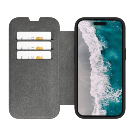 Helsinki è una custodia a portafoglio MagSafe riciclata, perfetta per coloro che apprezzano le caratteristiche di una custodia a portafoglio e allo stesso tempo desiderano una ricarica wireless semplice. Ma non è tutto. Helsinki è realizzata con materiali riciclati e riciclabili equivalenti a 2 bottiglie di plastica da 0,5: protegge sia il tuo telefono che il pianeta. La parte anteriore della custodia presenta un portafoglio a portafoglio realizzato in pelle vegana riciclata, mentre la parte posteriore è realizzata in plastica riciclata trasparente con un magnete MagSafe nero integrato.