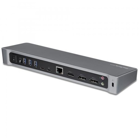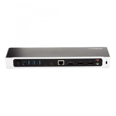 Questa docking station per tre monitor consente di trasformare il computer laptop in una workstation di grandi dimensioni. Offre infatti cinque porte USB 3.0 (1 USB Type-C e 4 USB Type-A, di cui 1 per la ricarica rapida), una porta Gigabit Ethernet, jack per cuffie e porte separate da 3,5 mm per microfono e audio.