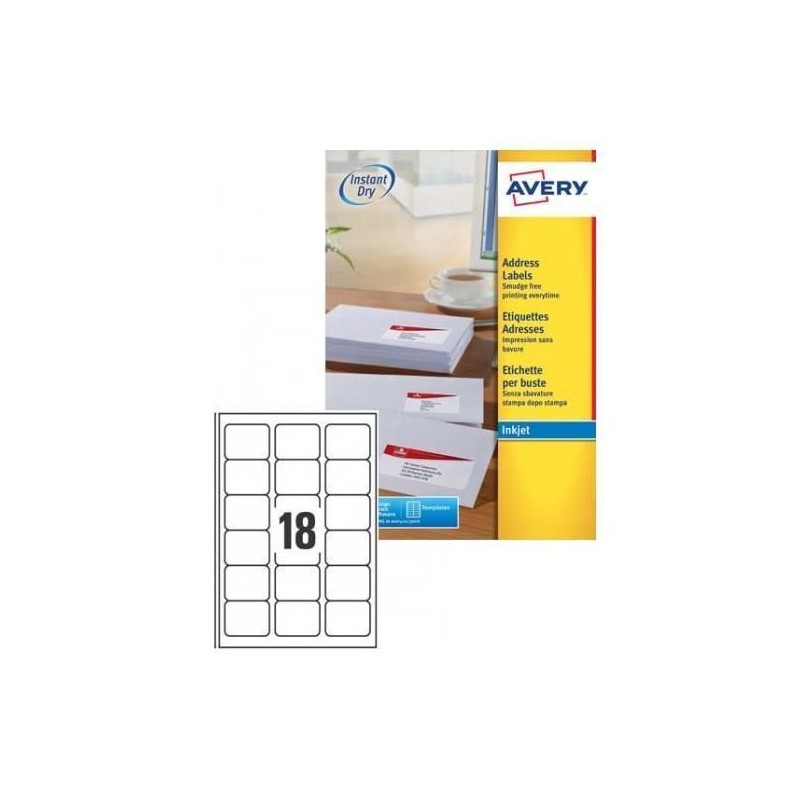 - Inkjet<br />Utilizzo: Indirizzi per buste <br />450 etichette per confezione <br />18 etichette per foglio<br />Permanente