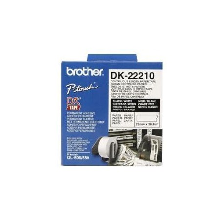 DK22210NASTRO ADESIVO IN CARTA NERO /BIANCO - 29MM -30,48 METRI DI LUNGHEZZA per : QL500/QL500A/QL550/QL560VP/QL570/QL580N/QL650TD/DL1050/QL1060N