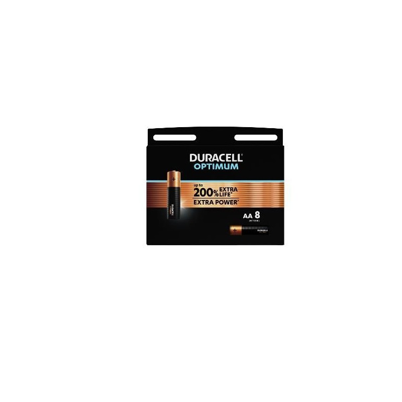 Duracell OPTIMUM con maggiore potenza del 100% in più concentrata (rispetto a Duracell Plus Power) fornisce prestazioni affidabili e potenza duratura in un'ampia gamma di dispositivi per uso quotidiano. Le batterie Duracell Optimum sono perfette per fotocamere digitali, console di gioco portatili, rasoi, telecomandi, lettori CD, giocattoli a batteria, torce, spazzolini elettrici, ecc. La confezione di Optimum, 100% riciclabile, consente di custodire al meglio e in sicurezza le batterie nuove e quelle usate in attesa che vengano riciclate