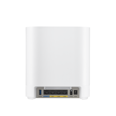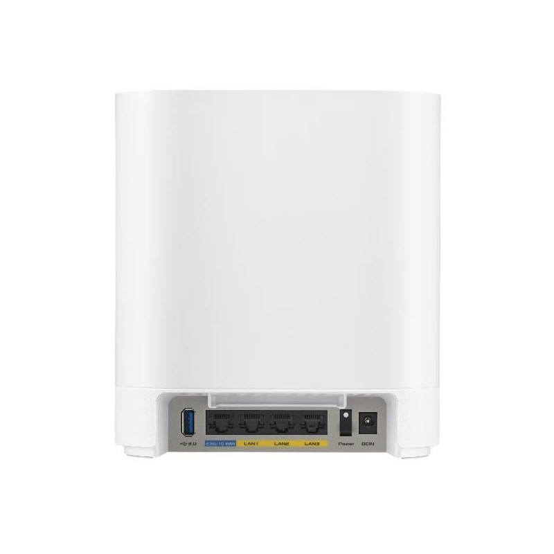 Router Asus Mesh di colore bianco, banda tripla ( (2.4 GHz/5 GHz/5 GHz) e Wi-Fi 6. Protocollo punto a punto operante su Ethernet IP statico. Antenna interna.Trasferimento Dati WLAN da 4804 Mbit/s. Processore da 1,7 Ghz.