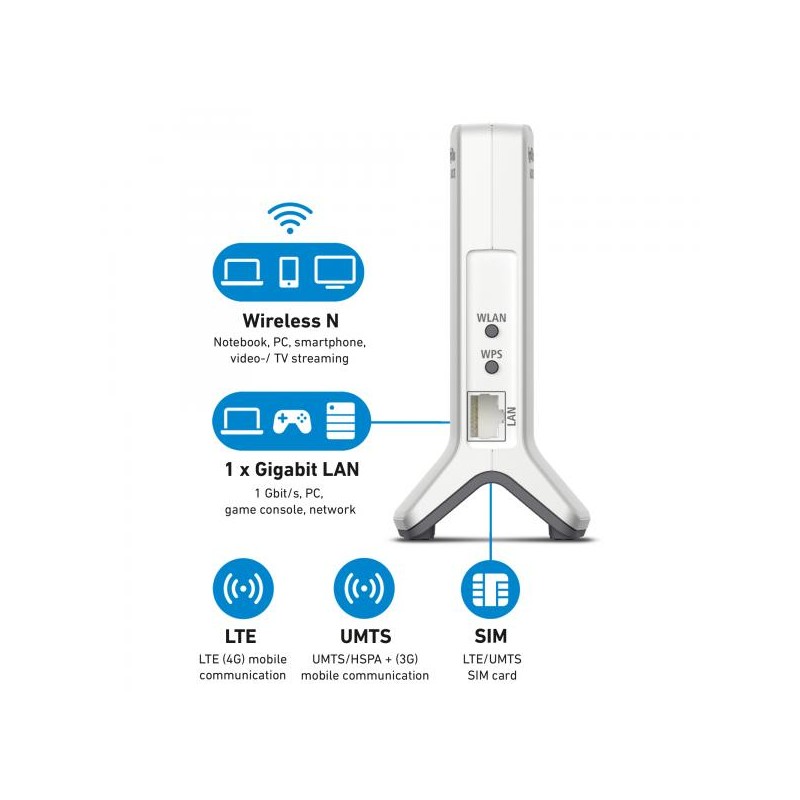 Aggiornamenti pesanti di programmi si risolvono rapidamente, grazie al download elevato. La forma sottile e verticale è l'assetto ideale per la migliore ricezione e quindi alta velocità. Anche il tuo smartphone potrà trarne beneficio quando sei a casa, perché può accedere alla connessione del router LT per le applicazioni di dati.