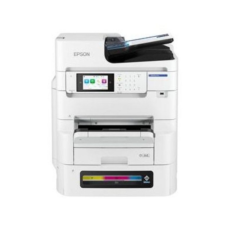 Epson WorkForce Pro EM-C8101RDWF. Tecnologia di stampa: Ad inchiostro, Stampa: Stampa a colori, Risoluzione massima: 4800 x 1200 DPI, Velocità di stampa (colore, qualità normale, A4/US Letter): 25 ppm. Copia: Copia a colori, Risoluzione di copia massima: 600 x 1200 DPI. Scansione: Scansione a colori, Risoluzione di scansione ottica: 1200 x 2400 DPI. Fax: Fax a colori. Funzione duplex: Stampa, Scansione. Massimo formato carta serie ISO A: A3+. Wi-Fi. Stampa diretta. Colore del prodotto: Bianco