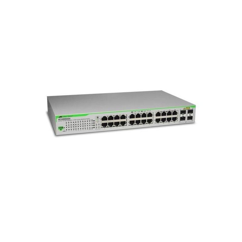 The Allied Telesis GS950/24 eco-friendly WebSmart switch upholds the Allied Telesis commitment to environmentally friendly processes and products. It is designed to minimize power consumption through the use of a high-efficiency power supply and a low power chipset.