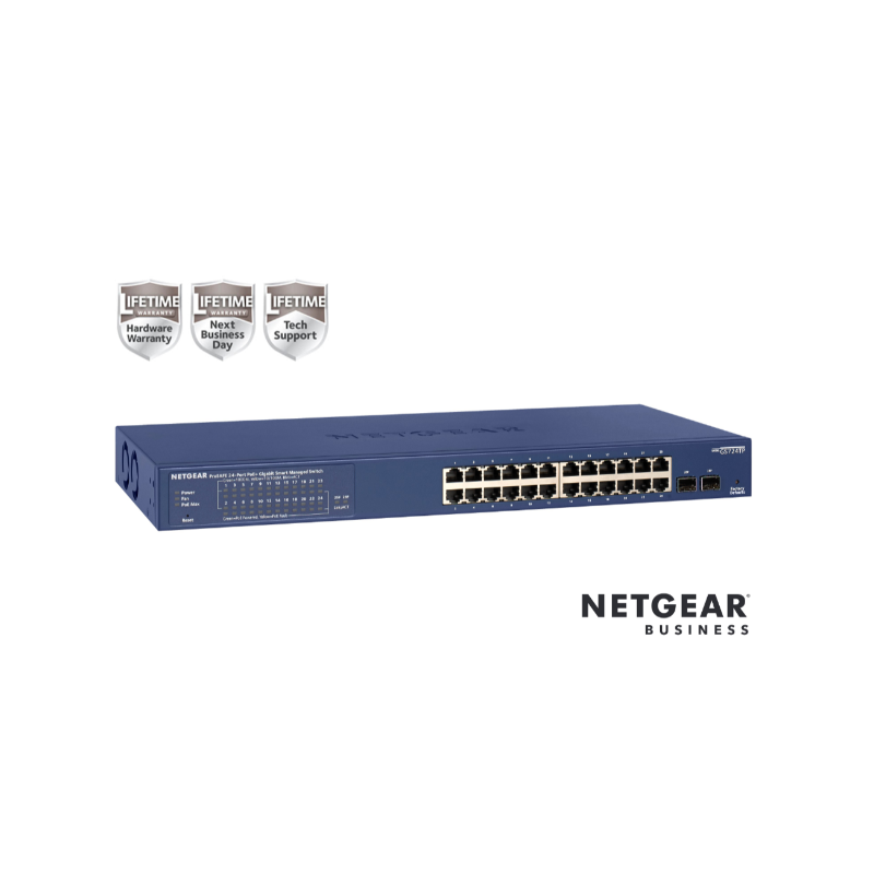 NETGEAR GS724TP Switch ProSAFE Smart Managed Pro 24 porte Gigabit PoE+ (budget 190W),2 SFP,Garanzia a vita+NBD