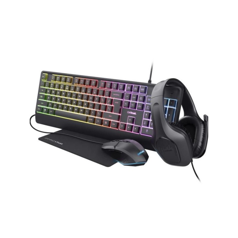 Tutto ciò che serve, in un unico pacchetto. Che tu sia agli inizi del tuo percorso da gamer o che voglia rinnovare la tua postazione, il pacchetto gaming Quadrox 4-in-1 ha tutto ciò che serve: tastiera e mouse illuminati, cuffie con microfono leggere e un tappetino per mouse. Si parte!